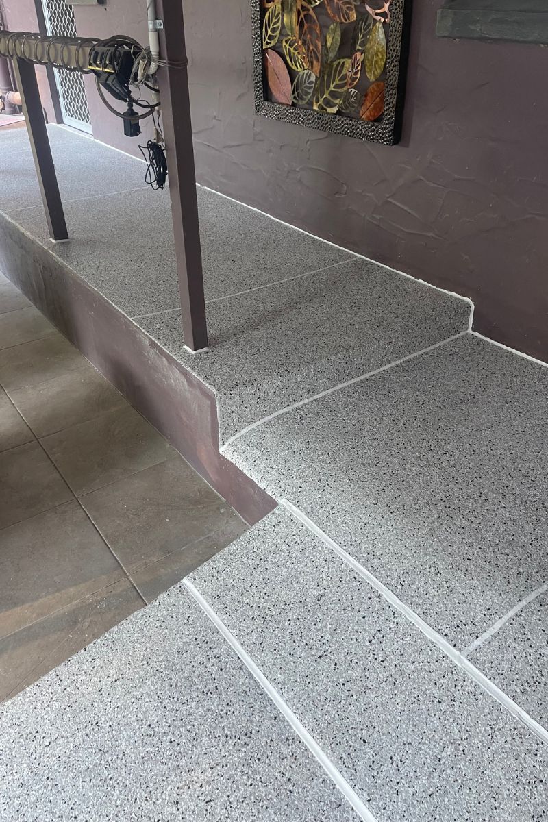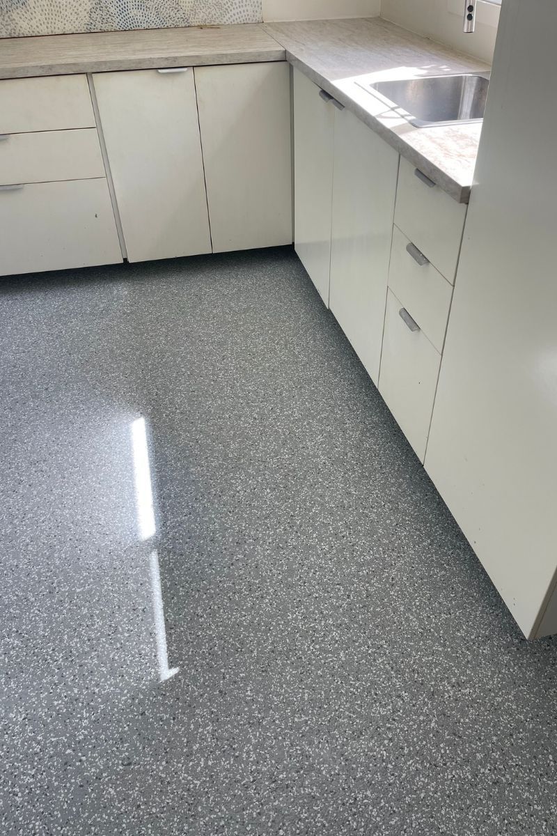 Epoxy floors can be treated with anti-slip materials to improve traction, reducing the risk of slips and falls and enhancing safety.